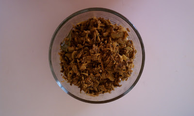 6. ADD THE POWDERED INGREDIENTS TO THE KADAI AND STIR IT WELL FOR ANOTHER MINUTE . THE BANANA FLOWER CURRY IS READY TO SERVE .SERVE IT WITH WHITE RICE . THIS CURRY WILL BE SLIGHTLY BITTER IN TASTE . ITS NOT VERY DOMINANT SINCE MY 5 YEAR OLD KID IS ABLE TO EAT .