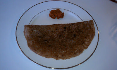 2. POUR THE DOSA BATTER ON TO THE HOT TAWA JUST LIKE THE RAWA DOSA BATTER . SPREAD SOME OIL AROUND THE DOSA . TURN THE DOSA UPSIDE DOWN AND WAIT FOR COUPLE OF MINUTES AND THE DOSA IS READY TO SERVE . SERVE THIS DOSA WITH THE RED ONION CHUTNEY .